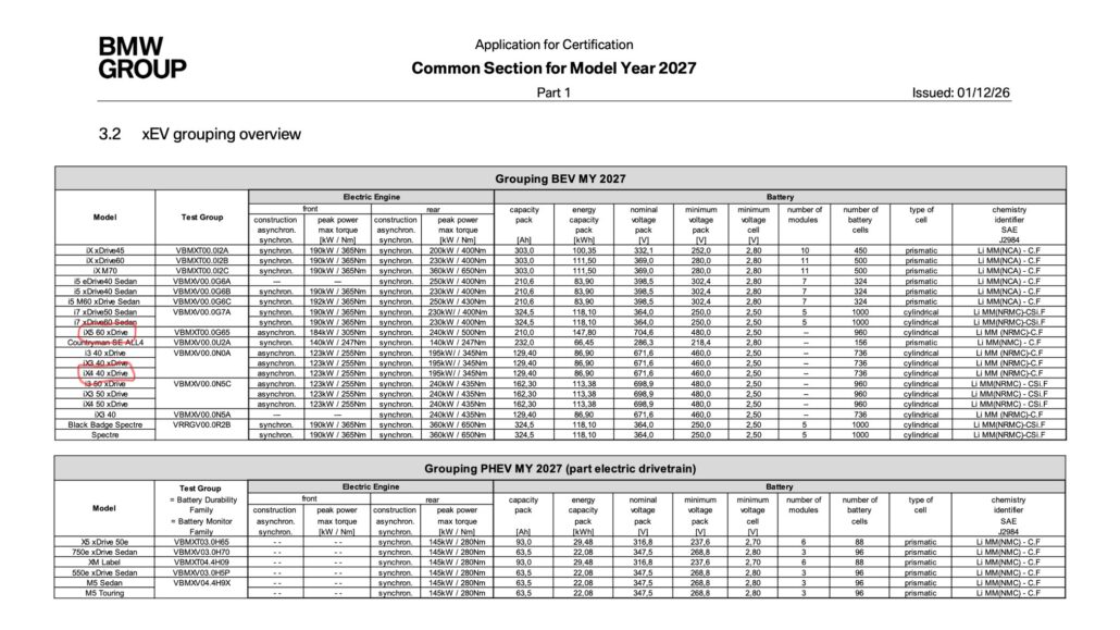 Enligt listan från EPA har BMW iX5 60 xDrive en elmotor på framaxeln med en effekt på 184 kW och på bakaxeln en motor med en effekt på 240 kW. Någon information om räckvidden finns inte, men med ett batteri på nästan 150 kWh kan vi nog räkna med att den är jämförbar med de 80 mil som den mindre iX3 tar sig med sitt batteri på 107,8 kWh. I listan från EPA listas också modellen iX4 40 xDrive, en modell som det ryktats om tidigare och som väntas bli en coupéversion av nuvarande iX3 med sluttande taklinje.